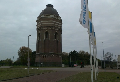 De monumentale oude watertoren is nog immer in gebruik. Ik heb begrepen dat die voor extra druk moet zorgen in geval er zich technische problemen voordoen, maar ik kan het mis hebben, want ik heb niet alles goed gevolgd wat Ies Karstenhoek ons vertelde en dat was een hoop.