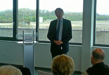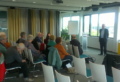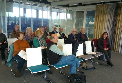 De heer Wim Drossaert, directeur van Dunea was verhinderd, in zijn plaats heette dhr Ad de Waal (heeft een langere naam, schreef op mijn verzoek zijn naam op, maar de rest was onleesbaar) ons welkom. Hij schetste daarna de geschiedenis van wat ooit de Haagse Duinwaterleiding was.