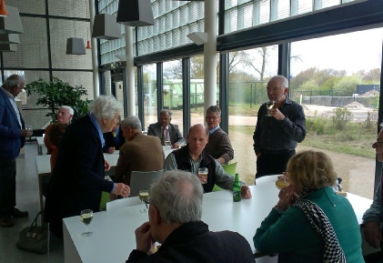 Na een informatieve tour en bezoek aan veel gebouwen, tot slot de borrel, lekkere hapjes, waarbij veel gewisseld over onder meer de actuele politiek. (Het bloed kruipt waar het niet gaan kan).